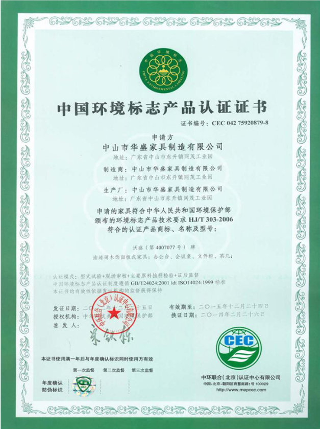 中国环境标志产品认证证书