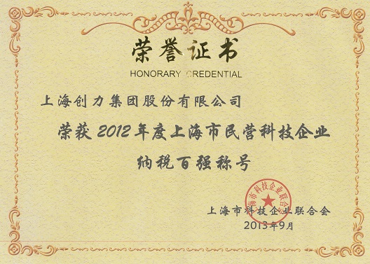 2012年度上海市民营科技企业纳税百强称号